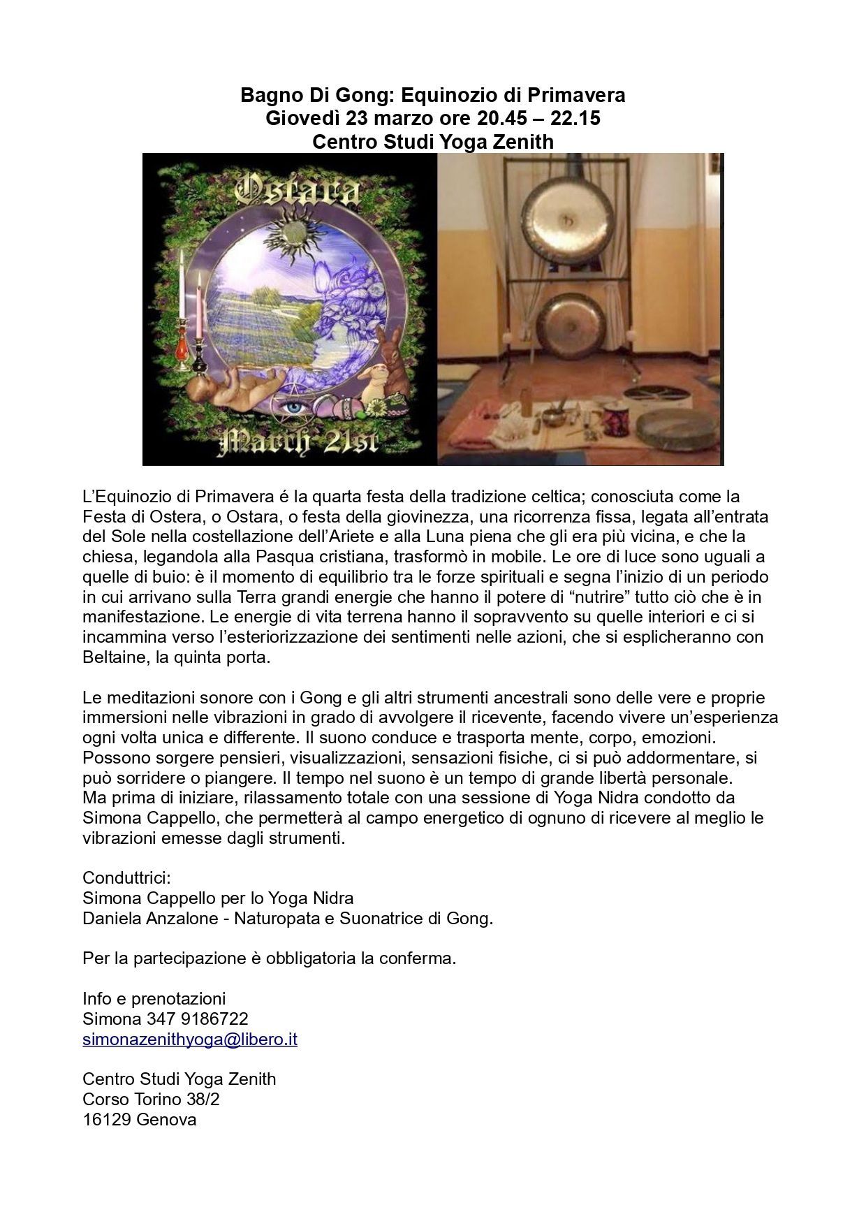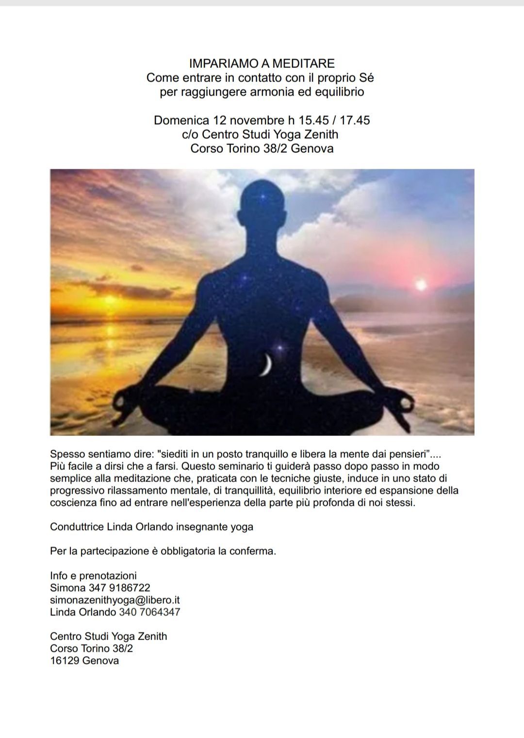 Sabato 18 Ottobre 2025 C/O Centro Studi Yoga Zenith, Corso Torino 38/2 - Genova