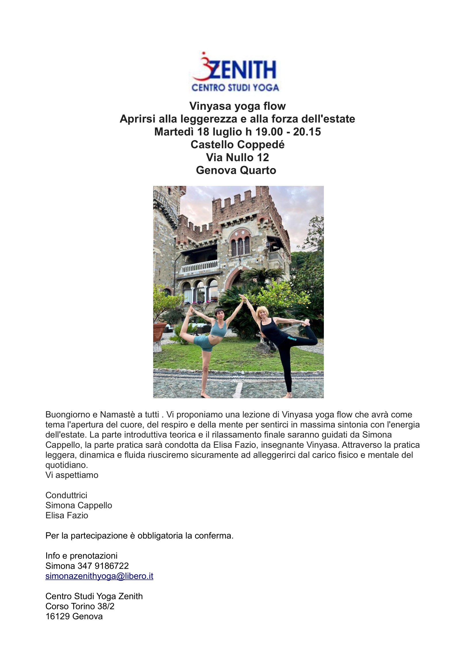 c/o Centro Studi Yoga Zenith - Corso Torino 38/2 Genova
